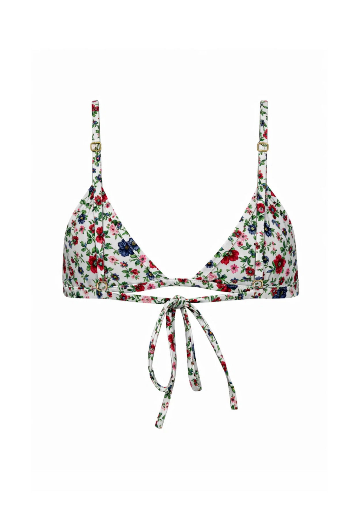 The Girasole Bikini Top by Mahéquline brings back the best selling floral print you love from SS25 in a classic Triangle Bikini Top with a white base and multi-coloured floral print. Adjustable neck and back ties for a unique fit.