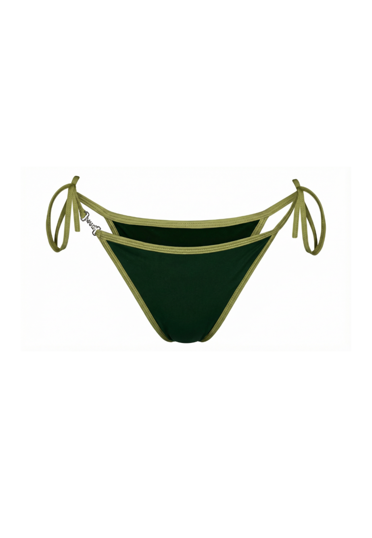 The Algae Bikini Bottom by Mahéquline is designed in our signature Sea Moss dark green, accented with the brand’s own Thistle, light green contrast detail. The bottom is featuring thin long straps in the sides which are adjustable for maximum support. Custom MAHÉ silver charm in stainless steel, customised for its durability and 100% rust-free properties, on the right side of the bottom.